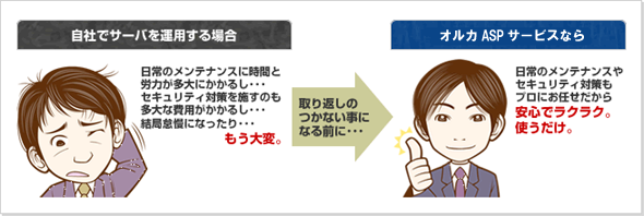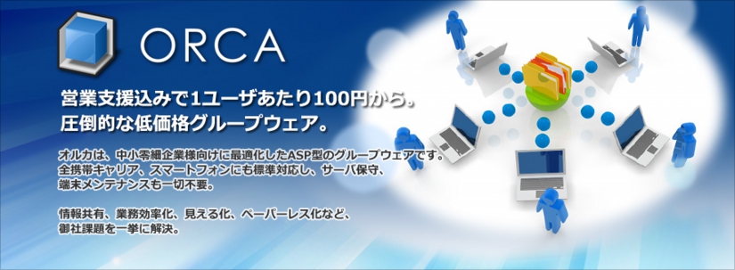 圧倒的な低価格グループウェア。営業支援込みで1ユーザあたり100円から。オルカASPサービスは、従業員規模150名程度までの中小零細企業様向けに最適化したASP型の質実剛健グループウェアです。